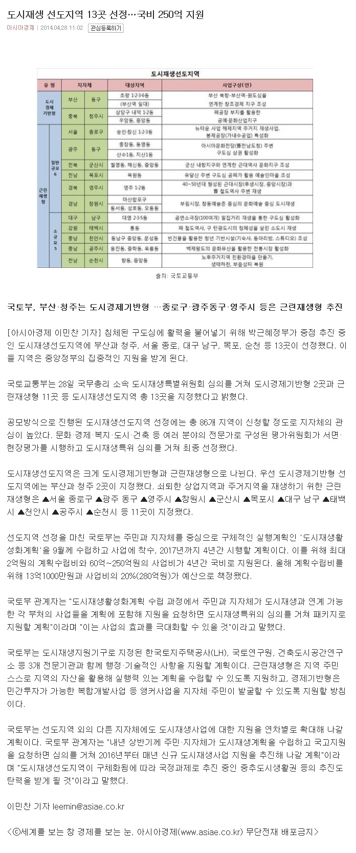 µµ½ÃÀç»ý ¼±µµÁö¿ª 13°÷ ¼±Á¤¡¦±¹ºñ 250¾ï Áö¿ø