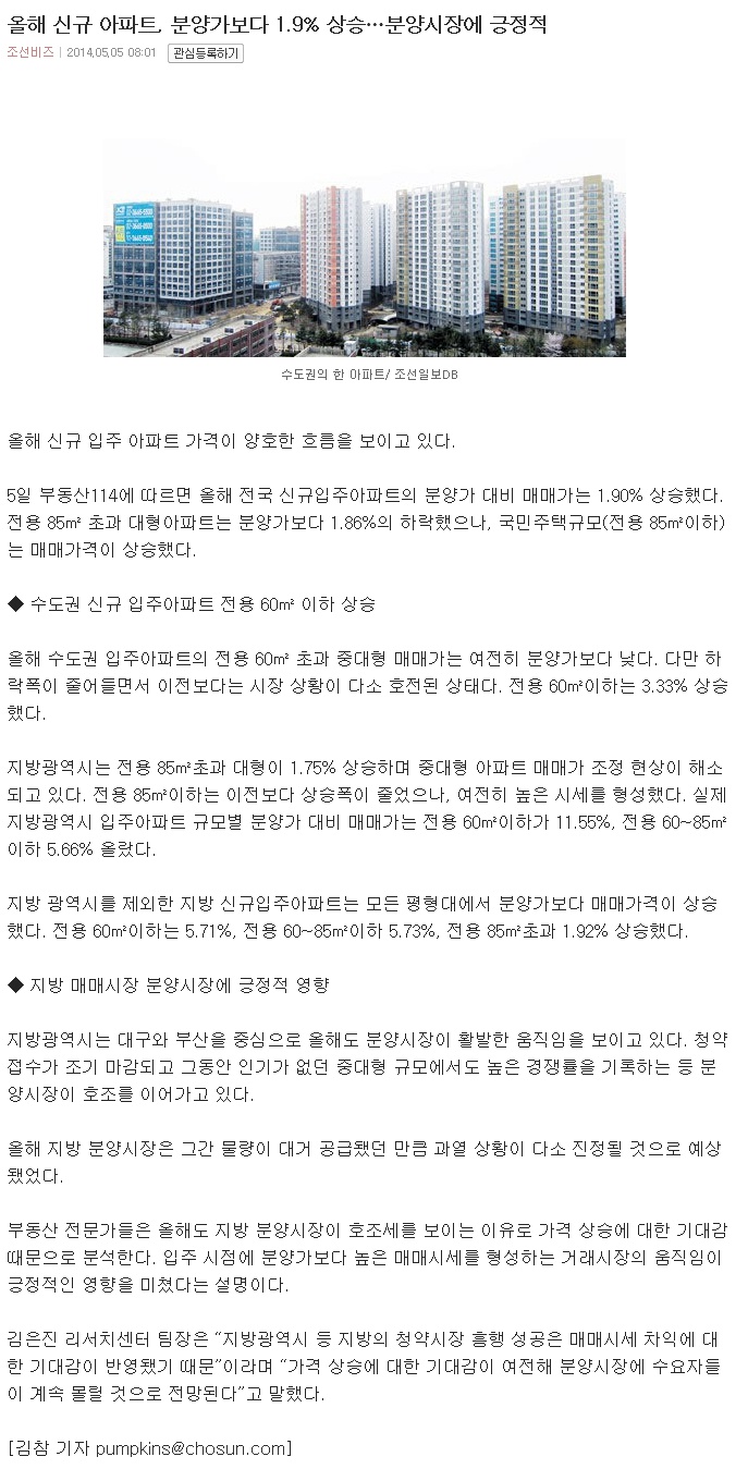 ¿ÃÇØ ½Å±Ô ¾ÆÆÄÆ®, ºÐ¾ç°¡º¸´Ù 1.9% »ó½Â¡¦ºÐ¾ç½ÃÀå¿¡ ±àÁ¤Àû